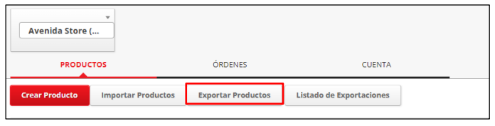 Primero, vamos a realizar una exportación de nuestro catálogo presionando el botón “Exportar Productos” en la pestaña de “Productos” de ShopAdmin.