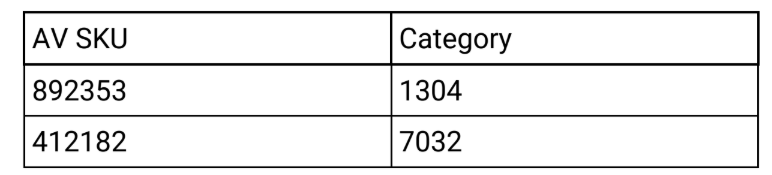 2. Cambiaremos el nombre de “ID” a “AV SKU” y el de “Categoría” a “Category”.