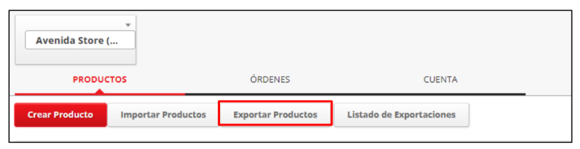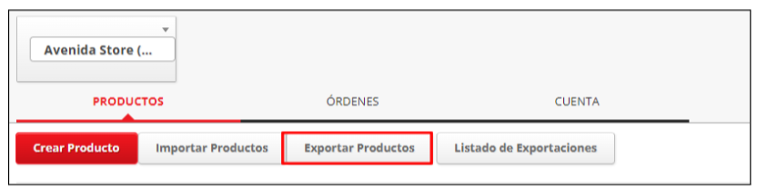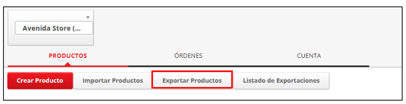 Primero, vamos a realizar una exportación de nuestro catálogo presionando el botón “Exportar Productos” en la