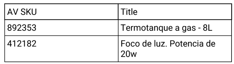 2. Cambiaremos el nombre de “ID” a “AV SKU” y el de “Titulo” a “Title”.