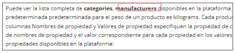 Nombre de la marca del producto tal cual aparece en el listado. Se pueden visualizar las marcas activas en la pestaña de “Importar Productos” de shopadmin.