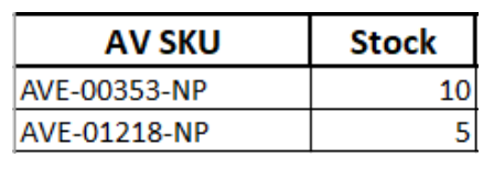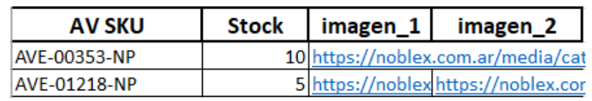 1. En base al export, eliminaremos todas las columnas a excepción de “SKU Avenida” y “Stock”. A “SKU Avenida” la renombramos como “AV SKU”.