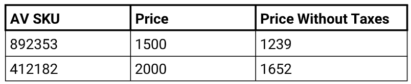 c. “Precio sin impuestos” a “Price Without Taxes”