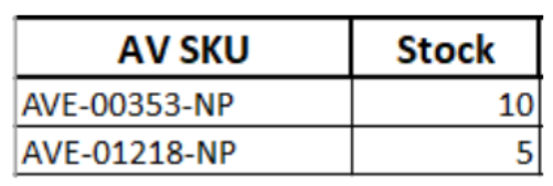 1. En base al export, eliminaremos todas las columnas a excepción de “SKU Avenida” y “Stock”. A “SKU