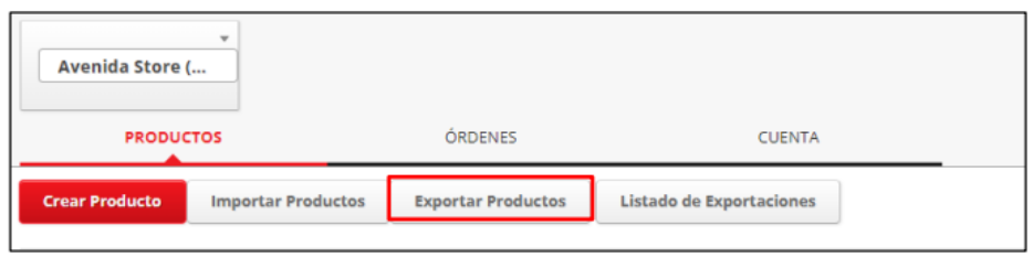 Primero, vamos a realizar una exportación de nuestro catálogo presionando el botón “Exportar Productos” en la pestaña de “Productos” de ShopAdmin.